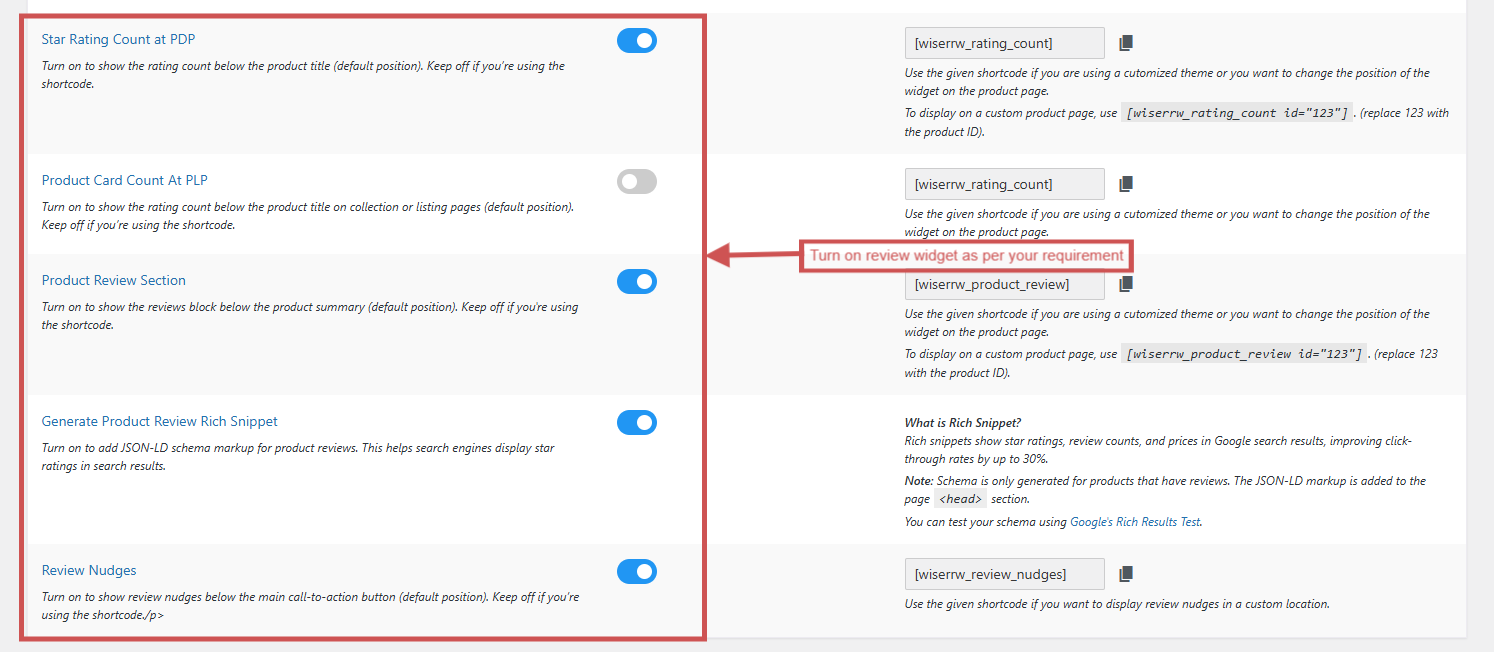 The widget will display only if product reviews are available in WiserReview.