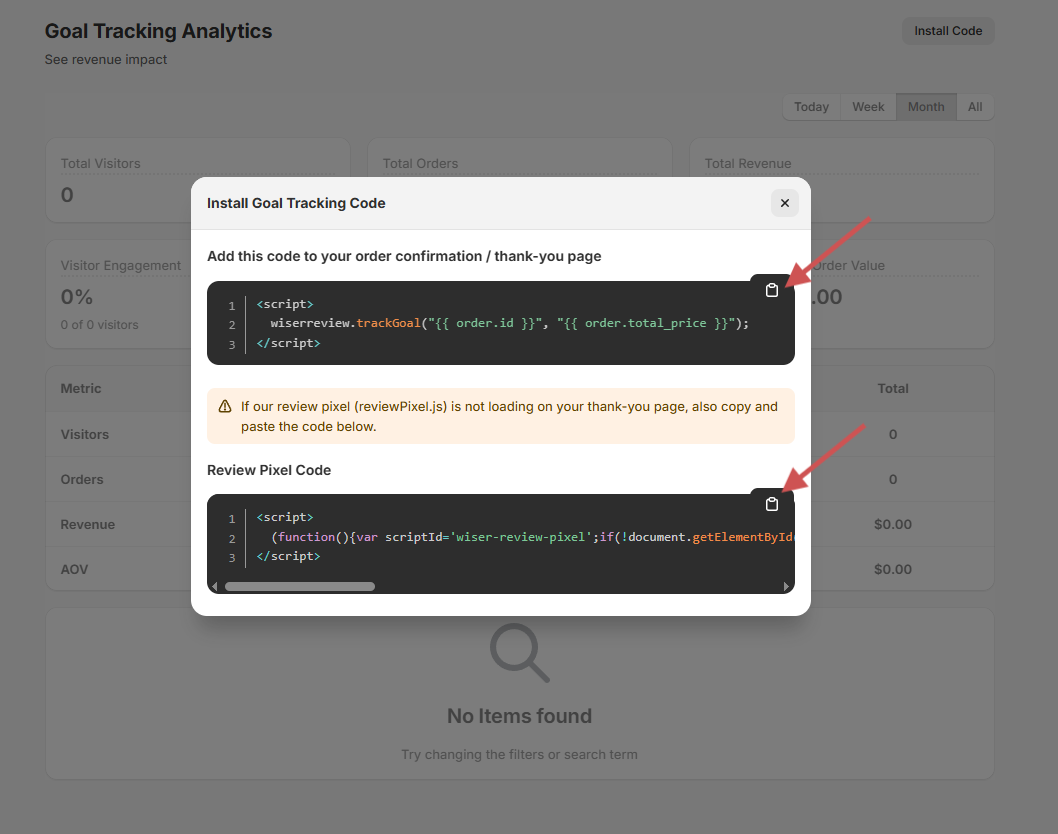 Goal Tracking requires one simple step: add a small code snippet to your “order confirmation page” (thank-you page).