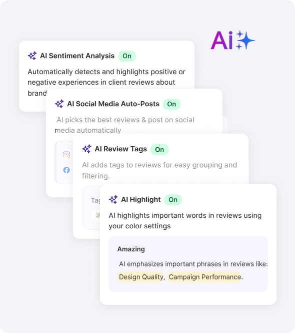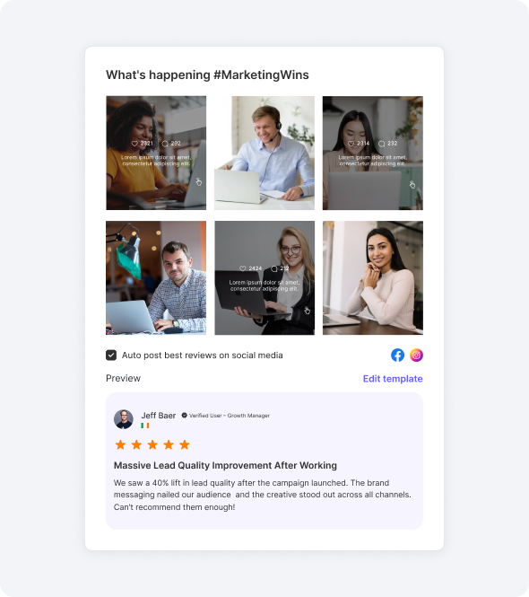 Showcase your best feedback where it matters most, on landing pages, service pages, and social ads.