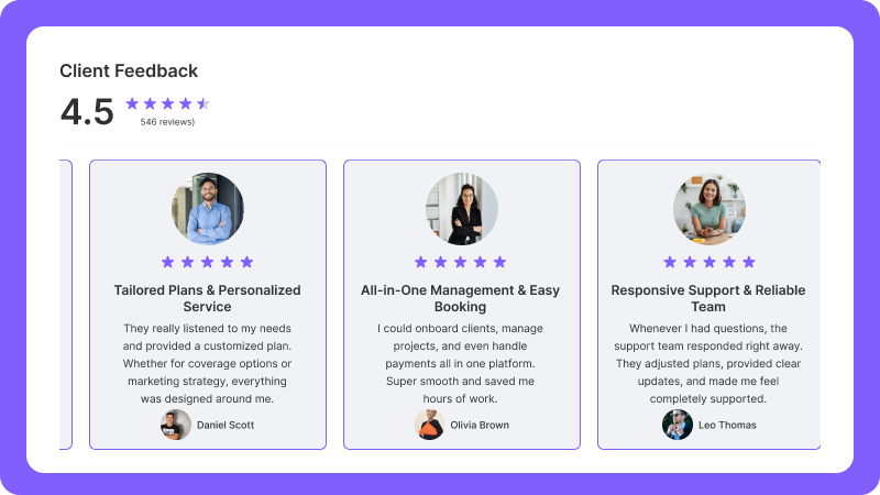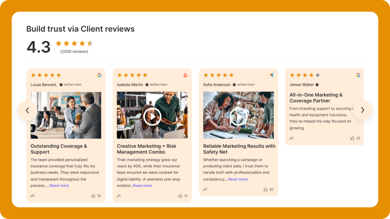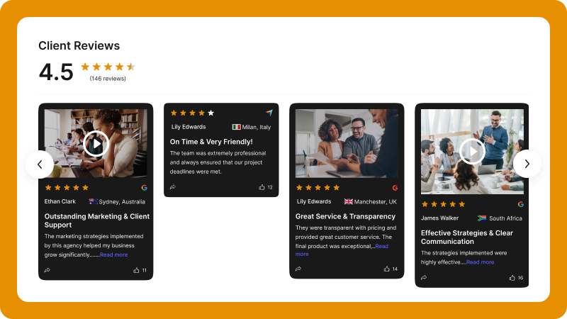 Clients can share how your team increased traffic, improved conversions, or helped launch a high-performing campaign, giving prospects the confidence to say yes.