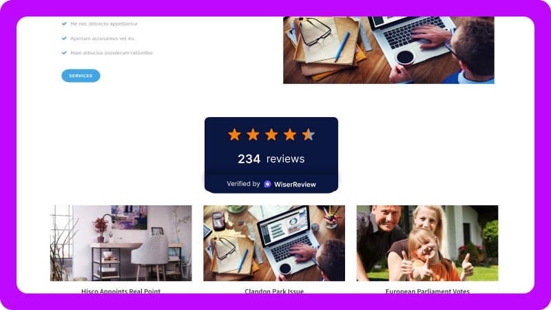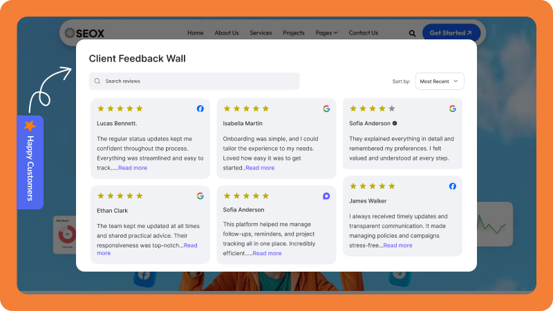 Use WiserReview to display service-specific reviews across SEO, PPC, social, and web design, helping leads quickly find relatable proof and move forward with less hesitation.
