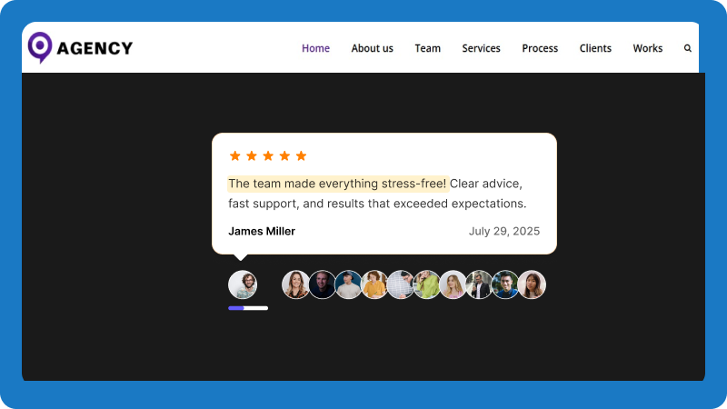 Top-performing agencies embed client reviews in cold emails, proposals, pitch decks, and retargeting ads.