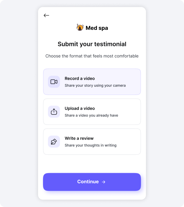 Accept photo, video, or text testimonials