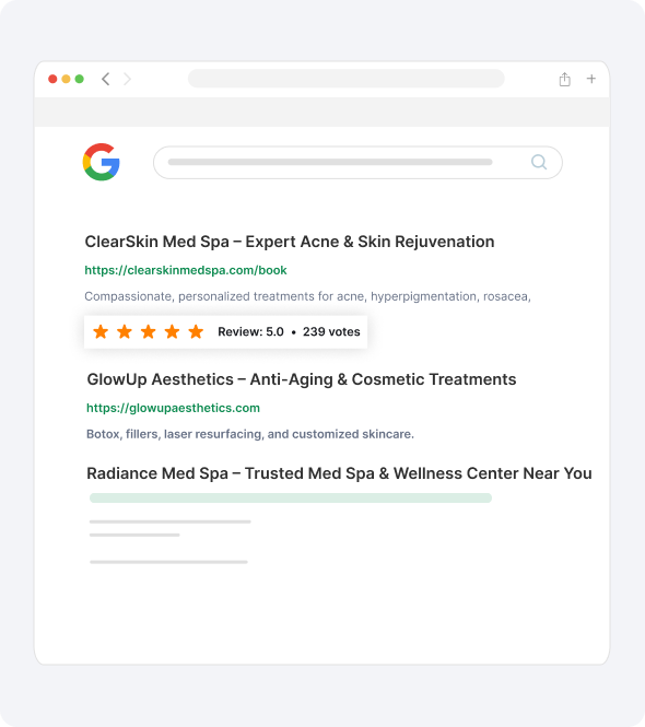 Over 70% of med spa patients say online reviews directly influence their booking decisions.