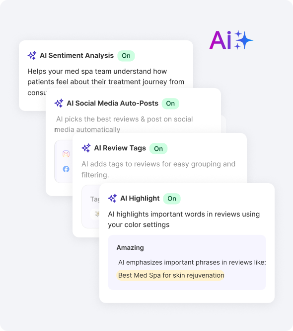 Use smart tags to organize reviews by treatment, so prospective Botox clients see Botox results, and facial clients see facial outcomes.