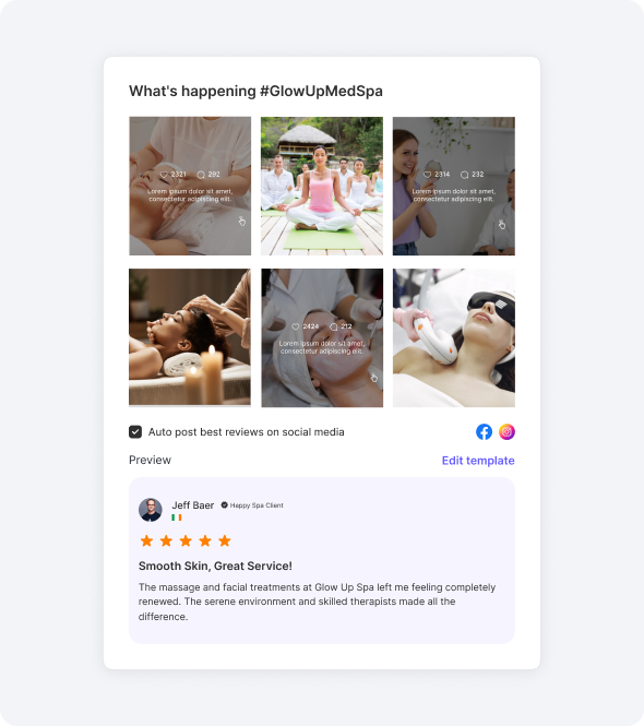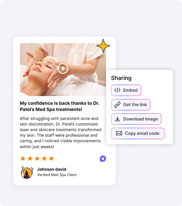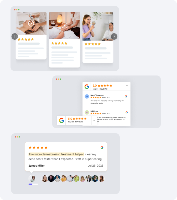 Whether you're running a luxury med spa or a modern boutique clinic, your reviews will feel like a natural part of your experience, on desktop or mobile.