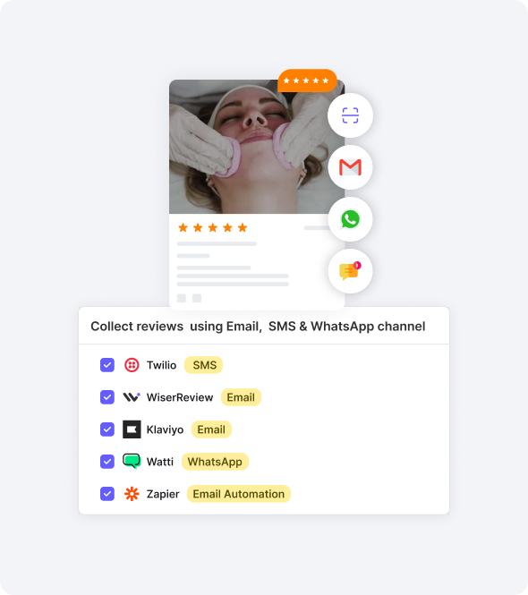 WiserReview sends automated review requests via SMS, email, or WhatsApp within minutes of the appointment, completely hands-free for your team and easy for clients to respond.