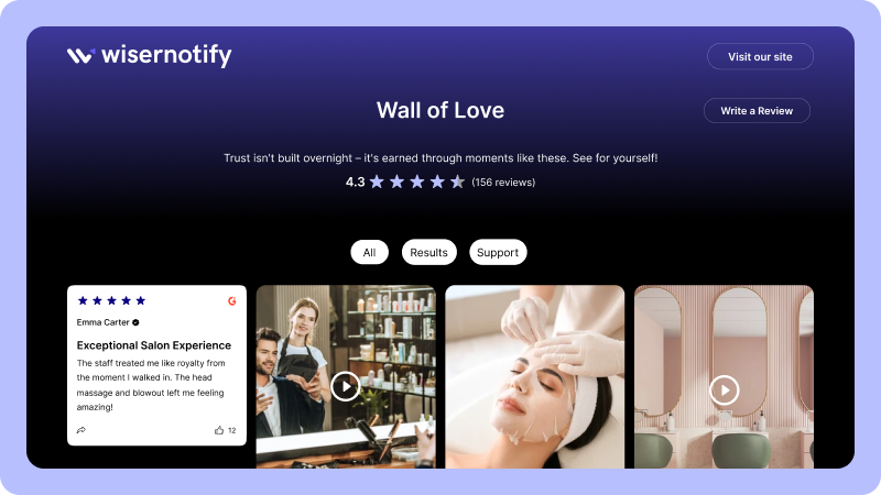 WiserReview helps you showcase real client experiences, complete with photos, videos, or written feedback, so trust is built before they ever step through your door.