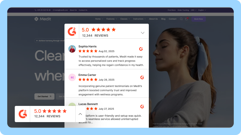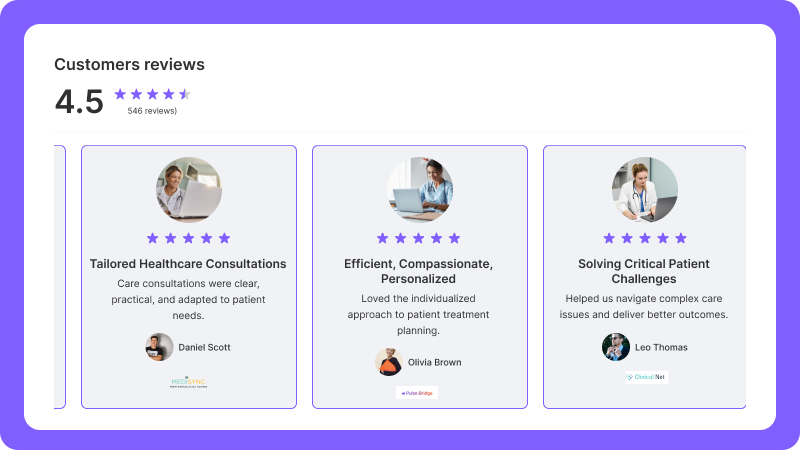 Yes. Use carousels, badges, or full review walls to place testimonials on your homepage, booking pages, or provider profiles.