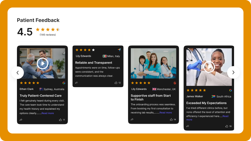 People search for reviews before selecting a provider. They trust first-person experiences more than medical bios.