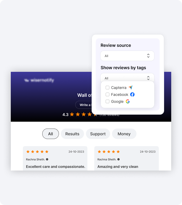 WiserReview lets you tag reviews by specialty, service line, or procedure.