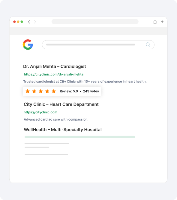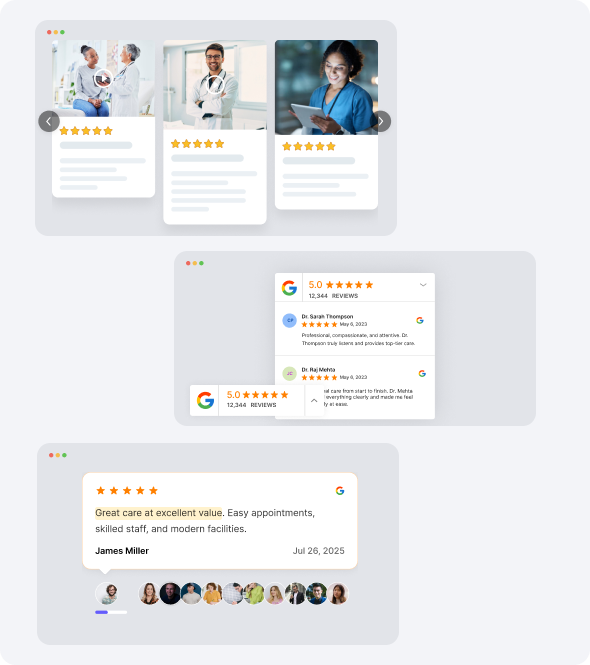 Turn patient experiences into trust Collect and showcase reviews that help more people choose your care.