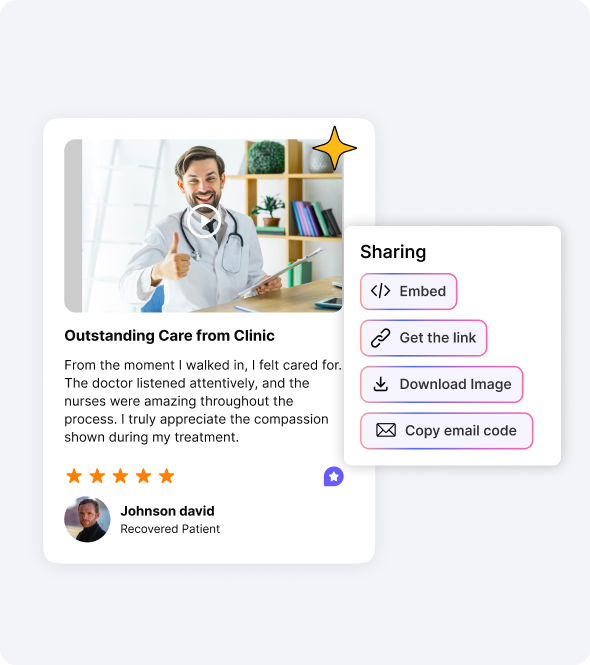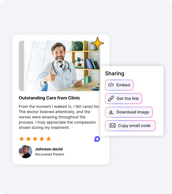 Collect, manage, and show patient feedback with ease. Set it once and let it work in the background.