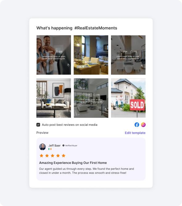 Trigger review invites after property closings, virtual tours, or consultation calls. Smart workflows handle the timing, channel, and incentive for you.