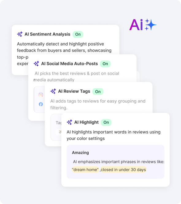 Use tags like “First-time buyer,” “Luxury condo,” or “Commercial lease” to organize reviews and show the right stories to the right prospects at the right time.