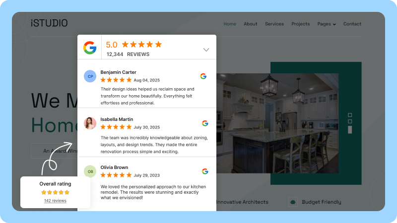 Placing reviews near calls-to-action, listing pages, or consultation forms helps turn browsing into booking.