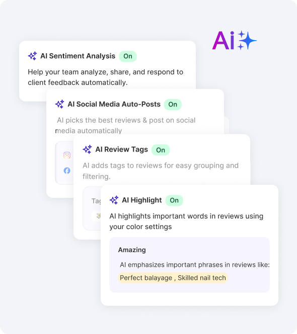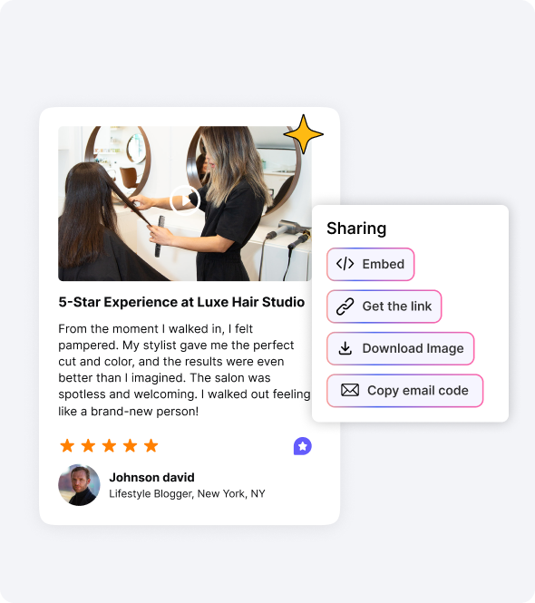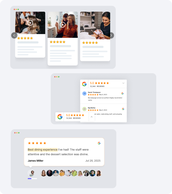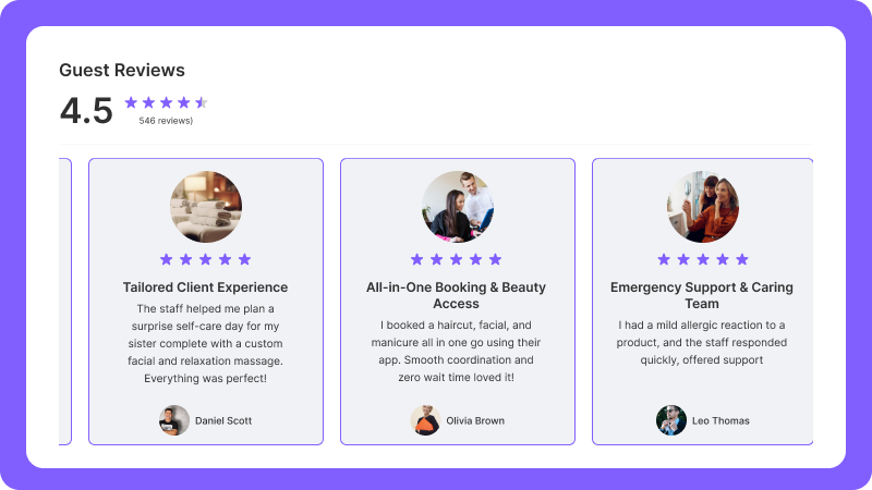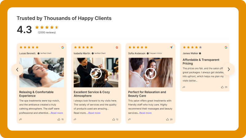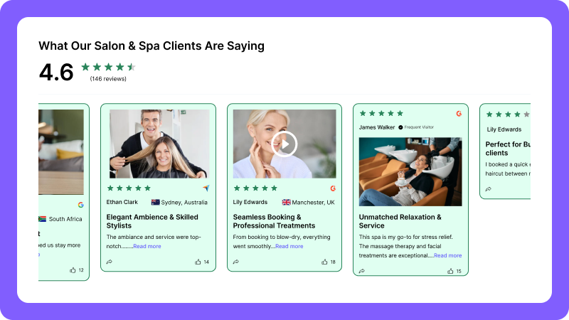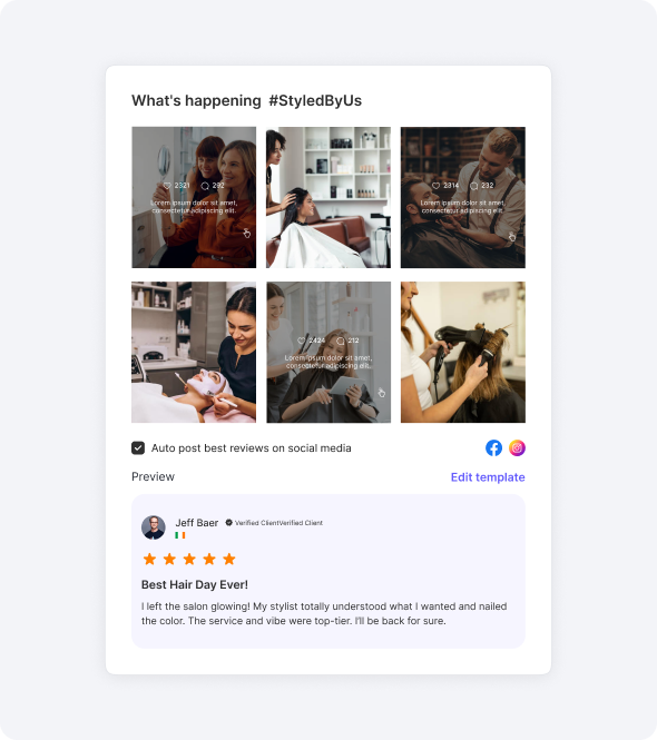 Collect feedback from happy clients and share it on your website, Google, and social media. Build trust so new customers choose your salon with confidence.