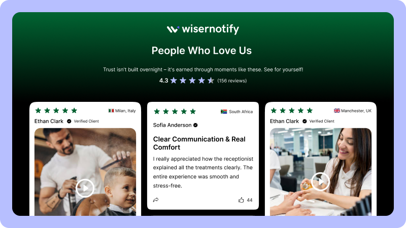 Boost conversions and trust with sleek, real-time popups that highlight your top reviews.