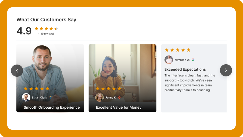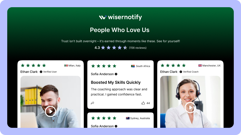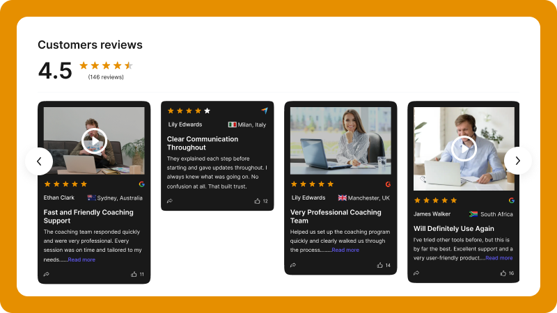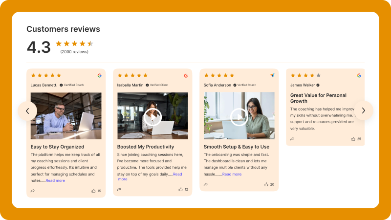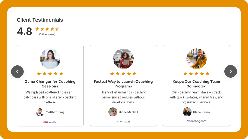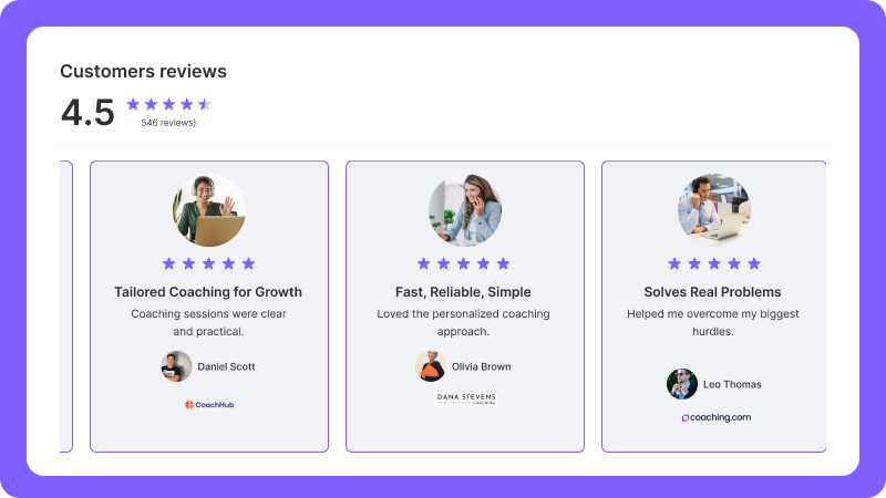 Build trust at every level of your coaching journey with results-driven testimonials.