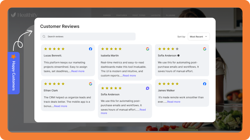 Showcase Client Reviews in a Sidebar to Boost Trust of Visitors.