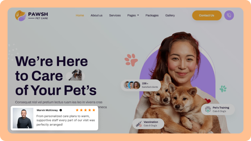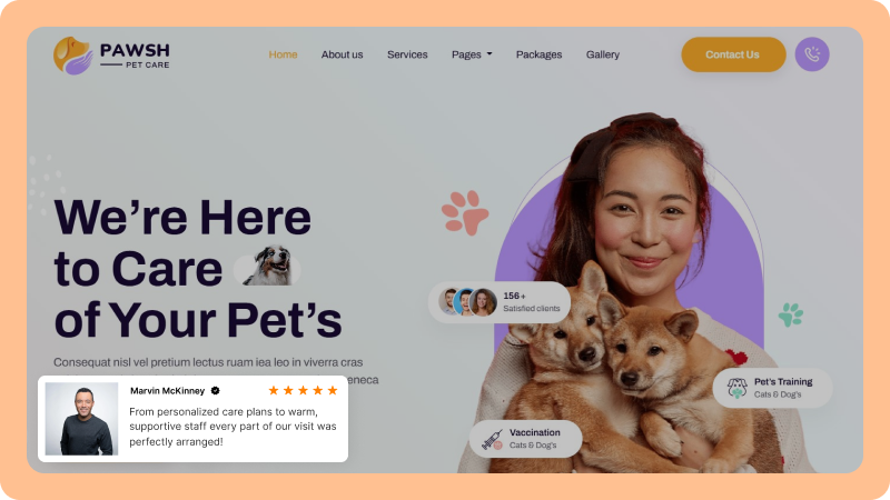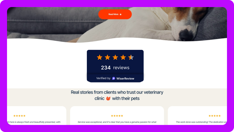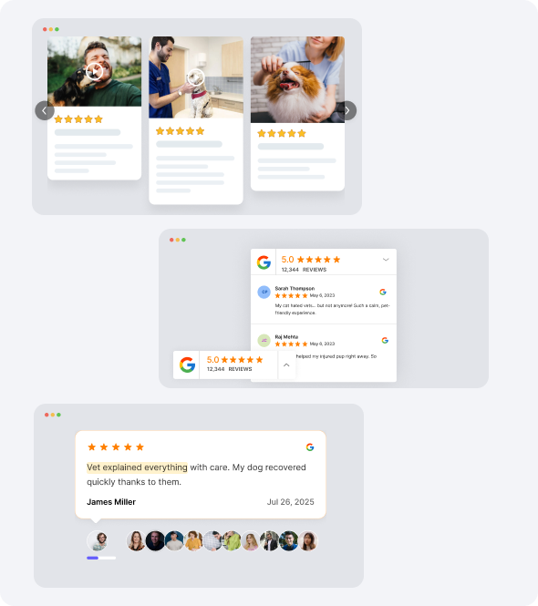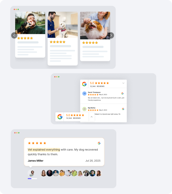 Put your best reviews on key pages to help new pet owners choose your clinic.