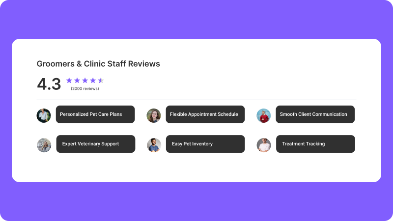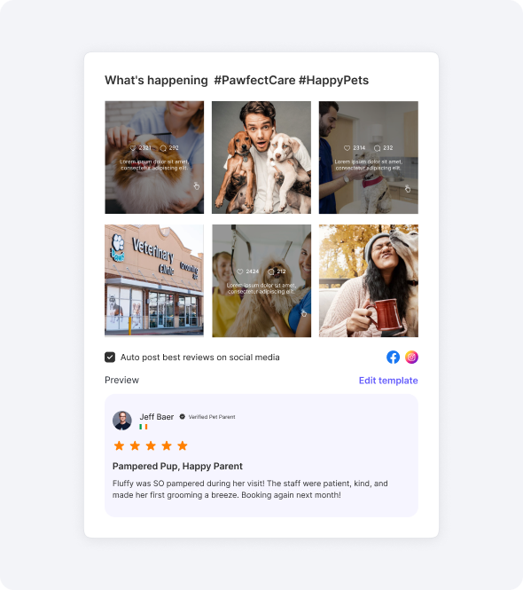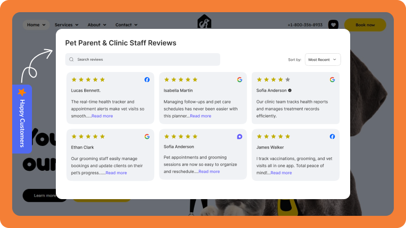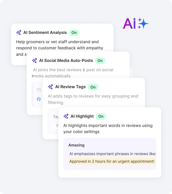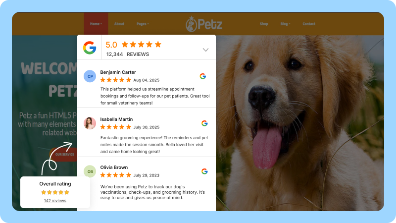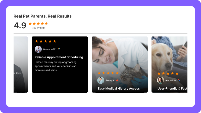 Share real reviews from pet owners that show your skill and compassion. Build trust before a new client even walks in.
