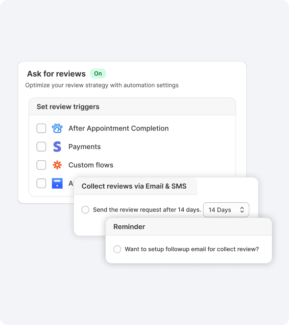 Send review requests after visits automatically so you can focus on caring for pets.