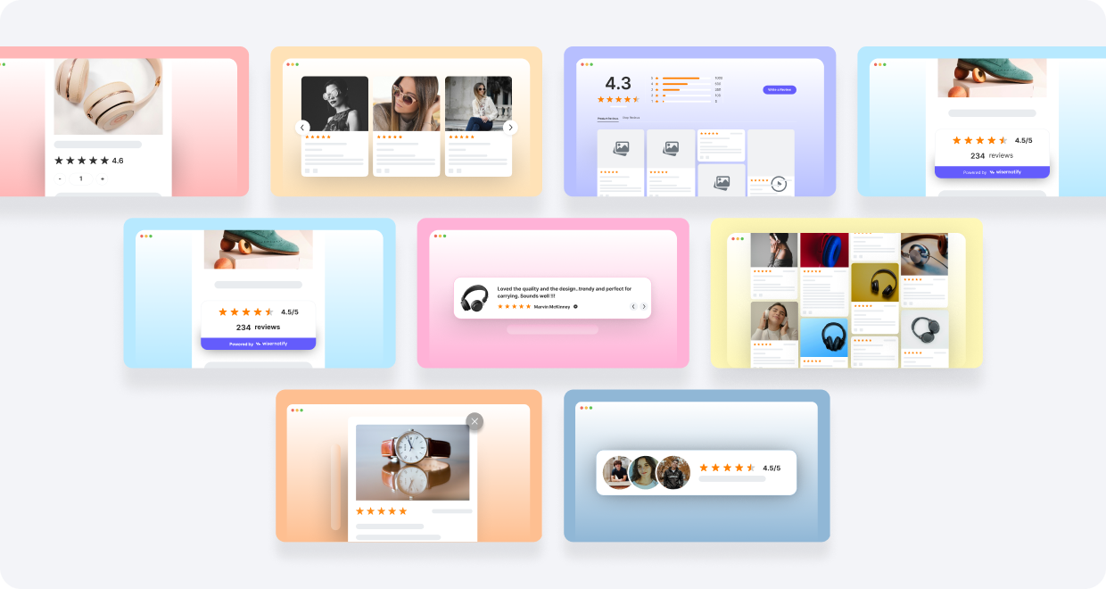 Your best reviews shouldn't sit hidden in a dashboard. Show them on product pages, landing pages, blogs, and checkout. 12+ widget styles that work on any platform.